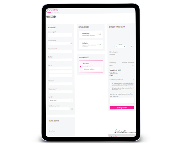 De focus lag vanaf het begin op het creëren van een webshop die naadloos aansluit bij de zakelijke behoeften van Cosinta’s klanten. Voor Cosinta betekent dit dat de webshop pas toegankelijk is na verificatie, waardoor deze exclusief is voor B2B-klanten. Daarnaast is het aanbod gepersonaliseerd op basis van klantgroepen, zodat elke klant precies ziet wat voor hen relevant is. Snelheid en gemak staan centraal in deze webshopervaring, met onder meer een eenvoudig bestelproces en heldere productweergave.